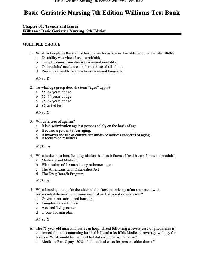 Test Bank For Basic Geriatric Nursing 7th Edition offers a meticulously crafted collection of test questions directly aligned with the edition of this renowned nursing textbook.