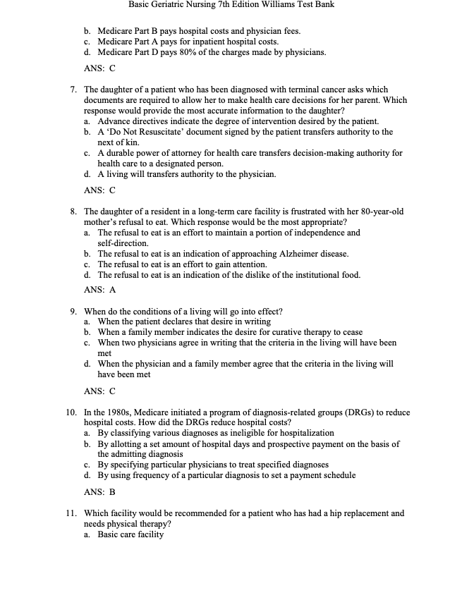 Test Bank For Basic Geriatric Nursing 7th Edition by Patricia A. Williams