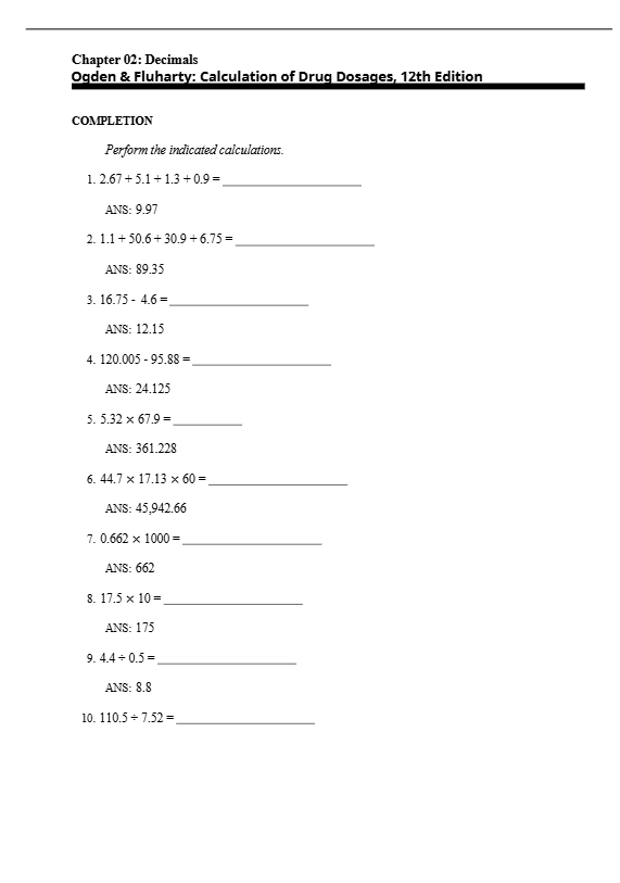 Built directly from the Calculation of Drug Dosages textbook, the test bank strengthens mathematical reasoning through progressive practice from simple tablet conversions to advanced IV infusion rate analysis. Each question reflects authentic hospital documentation, infusion pump settings, and pediatric weight-based adjustments to foster true clinical competence.