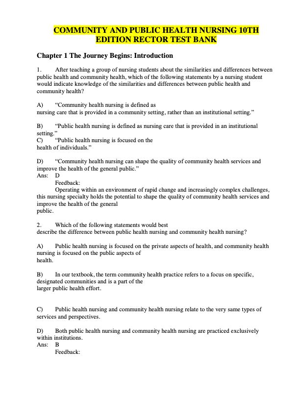 ToggleTest Bank For Community and Public Health Nursing 10th Edition offers a meticulously crafted collection of test questions directly aligned with the edition of this renowned nursing textbook.