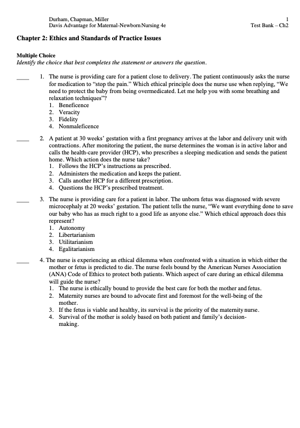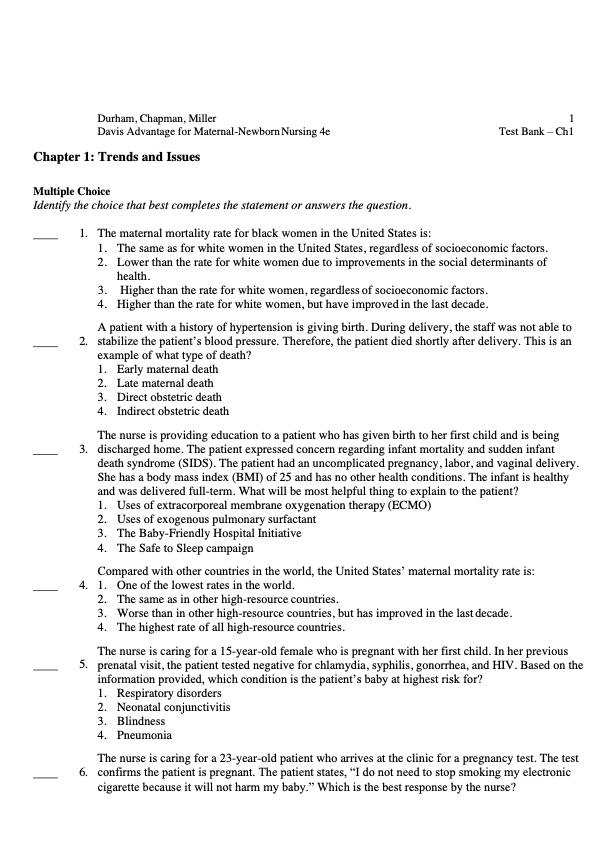 Test Bank For Davis Advantage for Maternal-Newborn Nursing 4th Edition serves as a premium question bank tailored for the maternal-newborn nursing specialty. Designed to be the ideal companion to the main textbook.