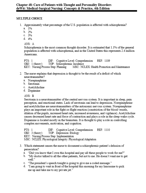 ToggleTest Bank For DeWit: Medical-Surgical Nursing: Concepts & Practice 4th Edition offers a meticulously crafted collection of test questions directly aligned with the edition of this renowned nursing textbook.