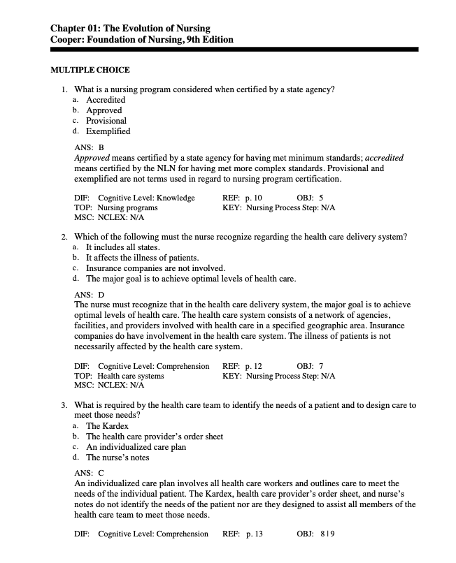 Test Bank For Foundations and Adult Health Nursing 9th Edition stands out because of its unique features: