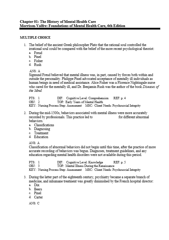 Test Bank For Foundations of Mental Health Care 6th Edition
