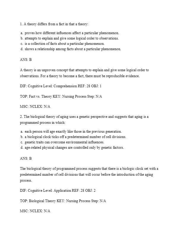 The test bank simplifies complex gerontology topics through repetition, reasoning, and realistic application. Learners preparing for exams can use it to: