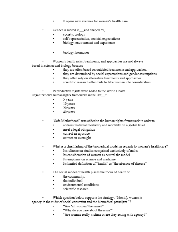 Test Bank For Gynecologic Health Care With an Introduction to Prenatal and Postpartum Care 4th Edition
