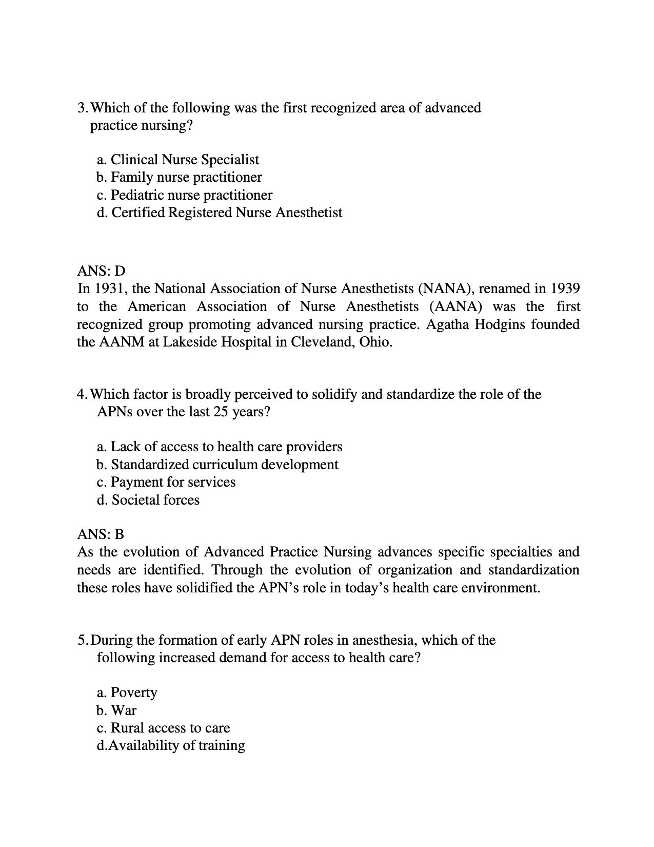 Test Bank For Hamric and Hansons Advanced Practice Nursing 6th Edition