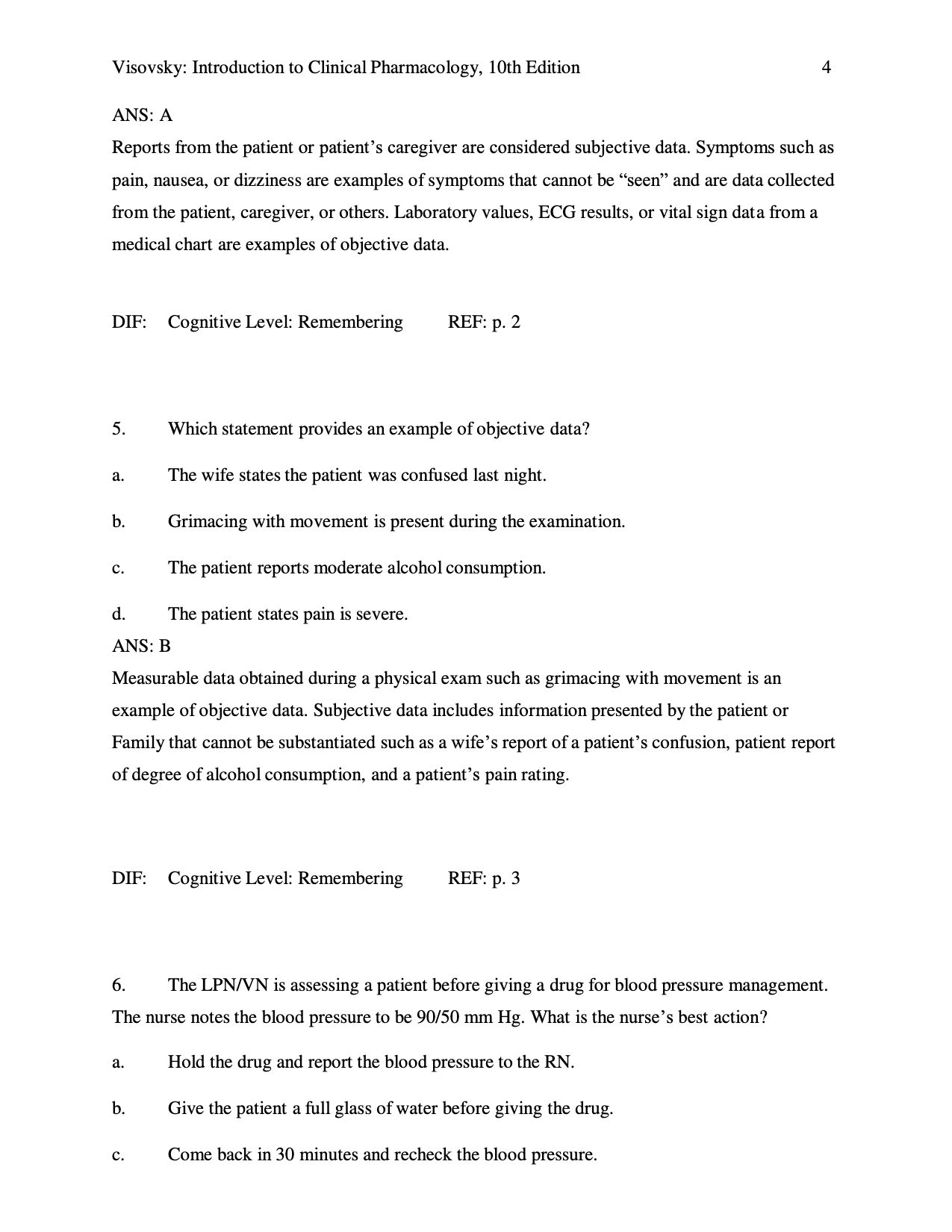 Outstanding Features of the Test Bank For Introduction to Clinical Pharmacology 10th Edition Visovsky
