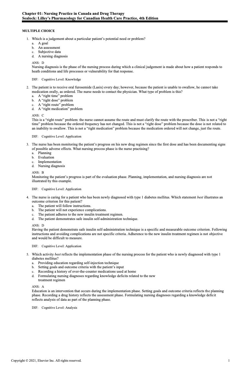 Outstanding Features of the Test Bank For Lilleys Pharmacology for Canadian Health Care Practice