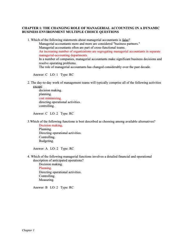 Here is a clear breakdown of what you will get with the Test Bank For Managerial Accounting Hilton 7th Edition: