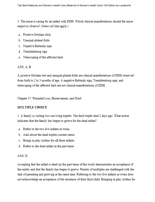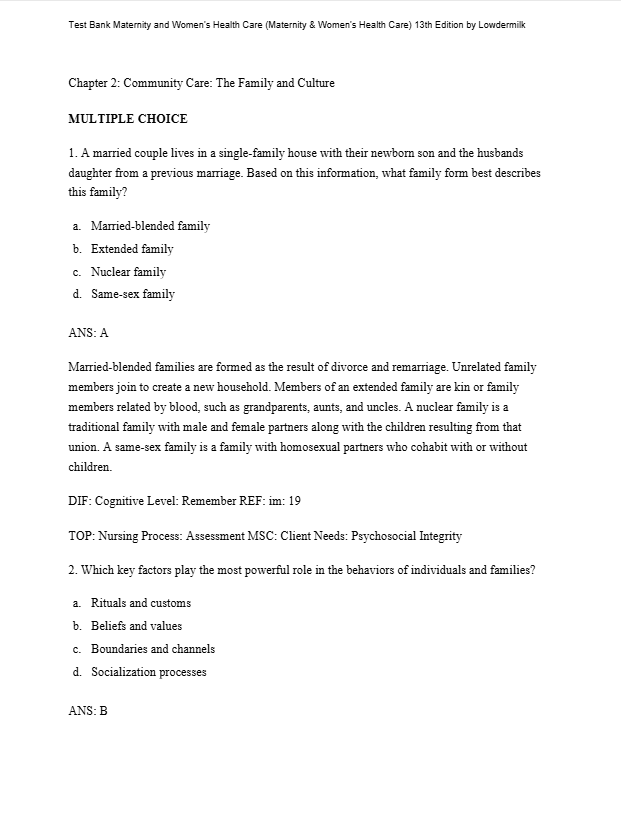 ToggleTest Bank For Maternity And Women’s Health Care 13th Edition By Lowdermilk offers a meticulously crafted collection of test questions directly aligned with the edition of this renowned nursing textbook.