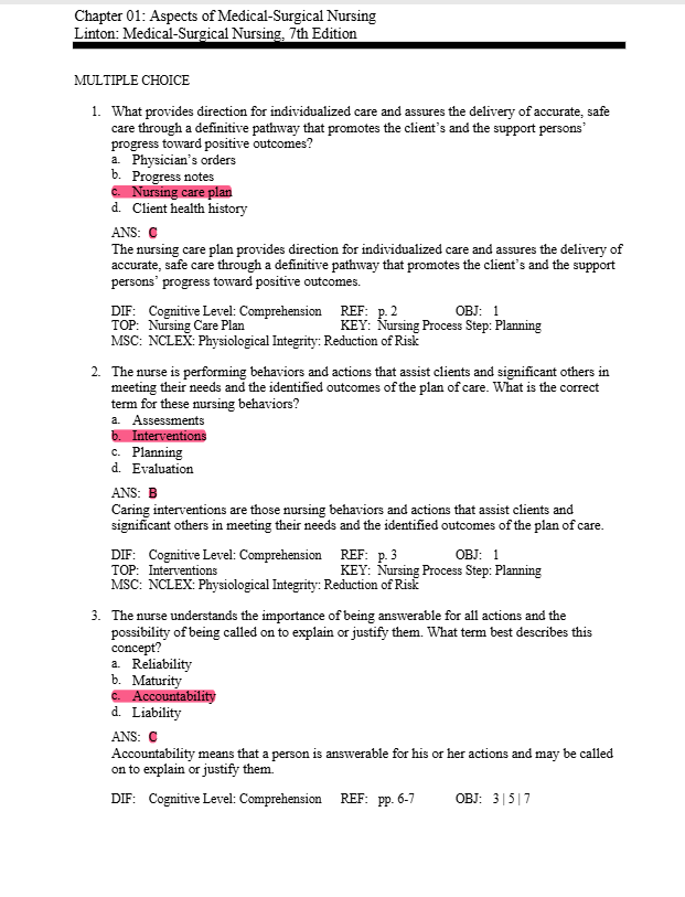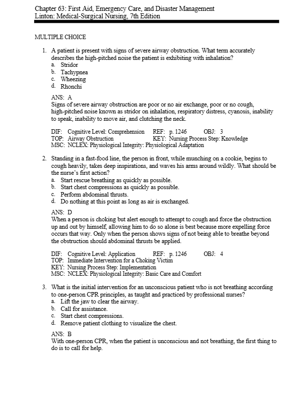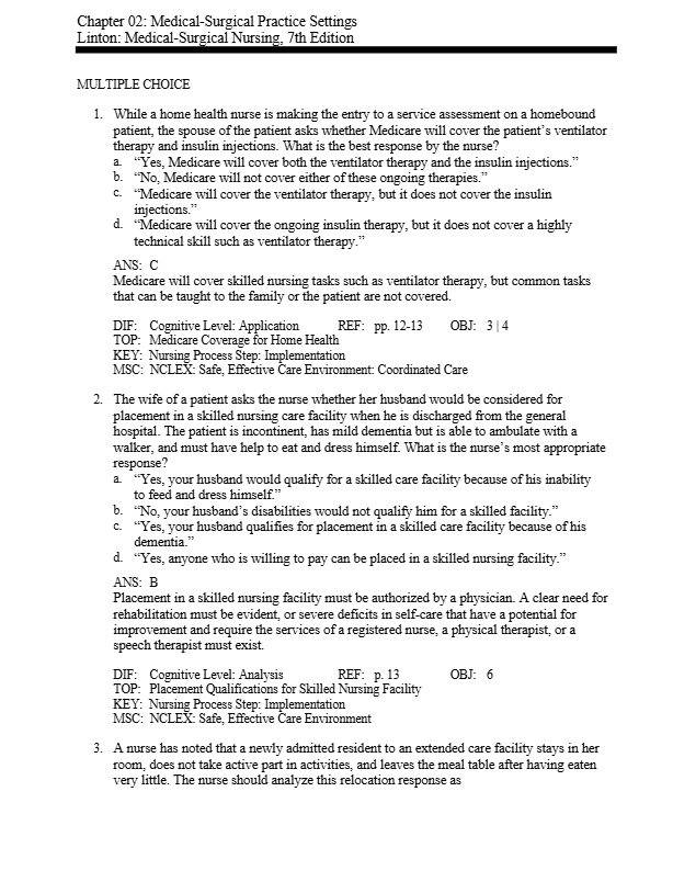 Test Bank For Medical-Surgical Nursing 7th Edition By Linton