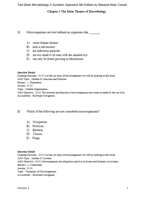 Test Bank For Microbiology A Systems Approach 6th Edition by Marjorie Kelly Cowan offers a meticulously crafted collection of test questions directly aligned with the edition of this renowned nursing textbook.