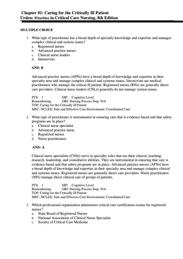 Midway through your semester is a good time to explore related products at testbankedu.com. Tools like the test bank are ideal companions for critical care nursing content.