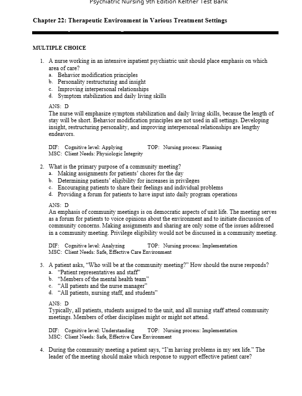 Test Bank For Psychiatric Nursing 9th Edition Keltner is an essential tool for students who want to excel in mental health nursing. It helps learners: